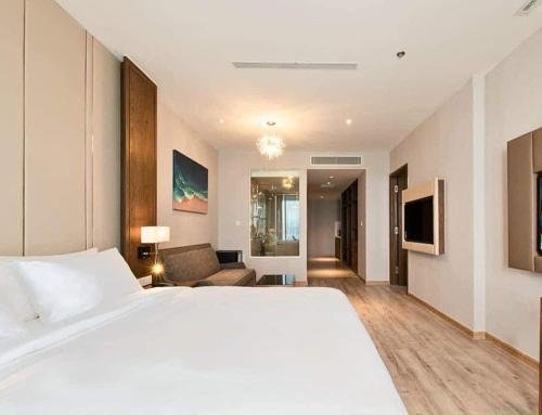 Experience a blend of comfort and elegance in our Deluxe Partial Sea View room at Panorama Nha Trang SanVilla. With 45 m² of space, this room features a king bed, a private balcony or terrace with a partial view of the sea, and a well-equipped kitchenette. Relax in the shower or bathtub, and stay connected with complimentary Wi-Fi for a truly enjoyable stay.